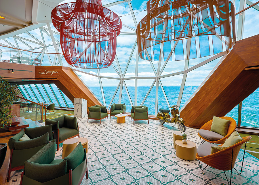 In allen Suiten steht neben mehr Platz zusätzlich eine täglich kostenfrei aufgefüllte Minibar zur Verfügung. Außerdem genießt man Zugang zum privaten X-Lounge-Bereich mit eigener Bar und separatem Sonnendeck – der perfekte Rückzugsort für ruhige Stunden an Bord.